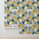 Bring a touch of retro flair to your interiors with this joyful wallpaper featuring a unique geometric design. The retro mood pattern combines calm and vivid colors that can transform any room into a stylish haven. Perfect for those looking to make a bold statement, this wallpaper is sure to impress your guests and enhance your decor. Explore the endless possibilities of revitalizing your environment and express your personality with this eye-catching design.