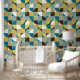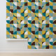 Bring a touch of retro flair to your interiors with this joyful wallpaper featuring a unique geometric design. The retro mood pattern combines calm and vivid colors that can transform any room into a stylish haven. Perfect for those looking to make a bold statement, this wallpaper is sure to impress your guests and enhance your decor. Explore the endless possibilities of revitalizing your environment and express your personality with this eye-catching design.