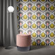 Bring a touch of retro flair to your interiors with this joyful wallpaper featuring a unique geometric design. The retro mood pattern combines calm and vivid colors that can transform any room into a stylish haven. Perfect for those looking to make a bold statement, this wallpaper is sure to impress your guests and enhance your decor. Explore the endless possibilities of revitalizing your environment and express your personality with this eye-catching design.