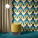 Bring a touch of retro flair to your interiors with this joyful wallpaper featuring a unique geometric design. The retro mood pattern combines calm and vivid colors that can transform any room into a stylish haven. Perfect for those looking to make a bold statement, this wallpaper is sure to impress your guests and enhance your decor. Explore the endless possibilities of revitalizing your environment and express your personality with this eye-catching design.