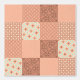 This vibrant patchwork design features a playful mix of retro geometric shapes, subtle floral patterns, and glowing diamond tiles. The palette includes soft peach, pastel pink, coral, and light brown, highlighted with accents of turquoise glow that add a unique contrast. With its quilt-like structure and nostalgic 70s-inspired feel, this pattern is ideal for home decor, fashion, stickers, or accessories. Perfect for anyone who loves vintage vibes mixed with a modern aesthetic!