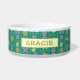 Retro Teal Patchwork Floral Custom Large Dog ボウル