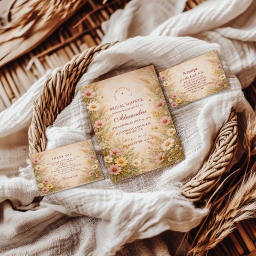 Celebrate the bride-to-be with this elegant autumn floral bridal shower design, featuring lush roses, dahlias, and soft foliage in warm rust, blush, and cream tones. The painterly floral border creates a romantic, inviting atmosphere that feels timeless and refined—perfect for a fall celebration.