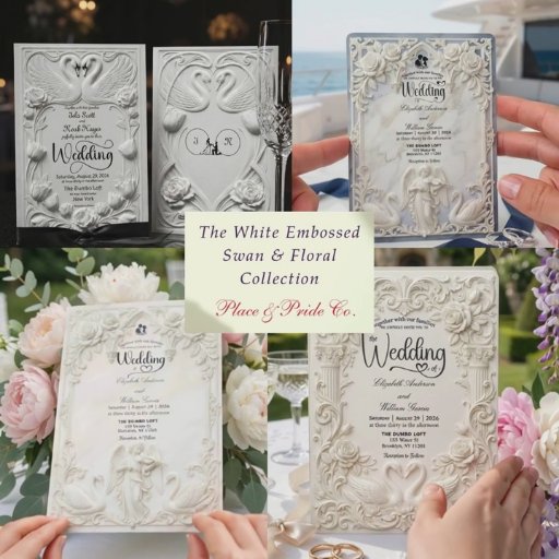 Set a tone of timeless romance with this Victorian-inspired design, featuring a faux sculpted paper effect and elegant silhouette cameo for your formal day.