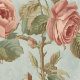 The roses bloom in gentle shades of dusty rose, blush pink, and cream, complemented by muted sage green foliage. Set against a pale antique blue background with a subtle damask texture, the design evokes the beauty of classic Victorian botanical illustrations and vintage floral wallpapers.