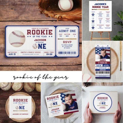 Rookie of the Year 1th Birthday Baseball Photo 招待状