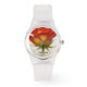 Introducing the clear silicone watch, a contemporary timepiece that combines style and versatility. Beautiful design inside capturing water droplets on a red and yellow rose and crafted with a durable clear silicone strap, this watch ensures comfort for everyday wear. Its sleek design adds a touch of sophistication, making it the perfect accessory for any occasion. Personalize it by adding a name to it!