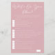 A delicate dusty rose pink bridal shower game What's On Your Phone for a girly bride. Personalize these feminine pastel pink paper sheets with your own point options for your friends. A fun customizable bachelorette party game.