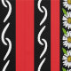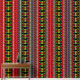Traditional Roses and Castles style patterned canal boat wallpaper, with red and yellow roses and white daisies
