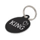 Distinctive and simple round black ID pet tag, with home address on the backside, available. Nothing fancy but stands out, without a doubt.