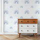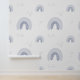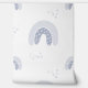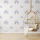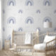 ローワンユニークコレクションの可愛い男の子ブルーbohoレインボー子供部屋壁紙はシンプル、ベビー子供部屋、キッズルームやプレイルームに最適。ライトブルーと白いレインボーユニークを備え淡い色の、春や夏にピッタリの可愛らしいミニマルデザイン。