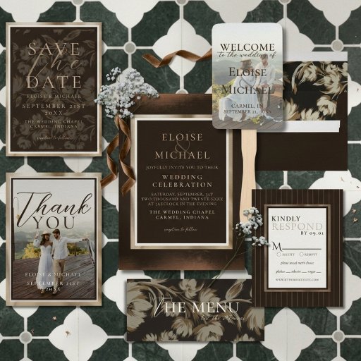 Rustic Brown Floral Pattern Wedding 招待状ベリーバンド
