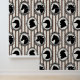 Hand-drawn animal cameo prints (horse, cow, rooster, duck) on ticking stripe or gingham in black, mocha and khaki make for a rustic barnyard farmhouse collection. Ideal for wallpaper, curtains, aprons, recipe binders, placemats, napkins, and journals—bringing cozy vintage country kitchen charm to your table and walls.