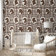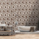 Rustic Farm Kitchen Barnyard Gingham - Mocha Toile 壁紙