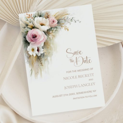 Rustic Pink and White Floral Wedding 招待状