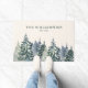 This stylish rustic doormat features a beautiful modern farmhouse style watercolor painting of a forest of trees. Personalize it with your family name and date. Perfect for Christmas or year around.