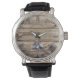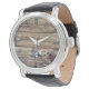 Capture a timeless memory with this custom rustic wood-style watch. The design features a realistic vintage barn wood texture paired with elegant, 3D-effect silver Roman numerals that give the watch a premium, classic look.