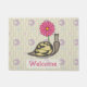 Sadieはペイズリーのかたつむり彼女が彼女のお気に入りのなピンクの花の下で彼女のストライプのな貝でscootsと同時に微笑します。 つる植物およびファンキーな円のパターンは淡い色のなクリーム色の基盤で場面のためのかわいい背景幕を作成するために置かれます。