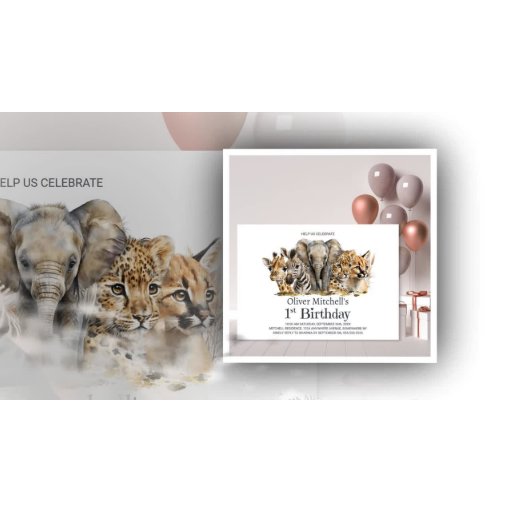 Safari Animals 1st Birthday Thank You サンキューカード