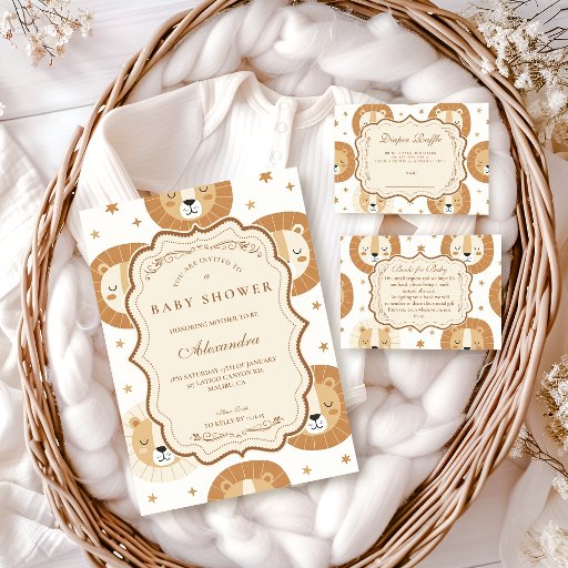 Safari Lion Neutral Baby Shower Diapper Raffle エンクロージャーカード