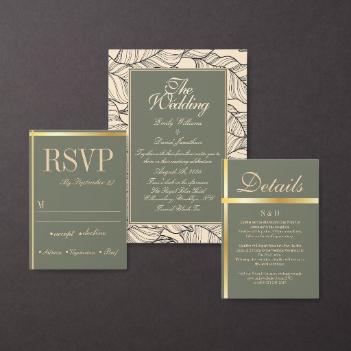 Sage GreenとWhiteの応答ミニマルカード 出欠カード