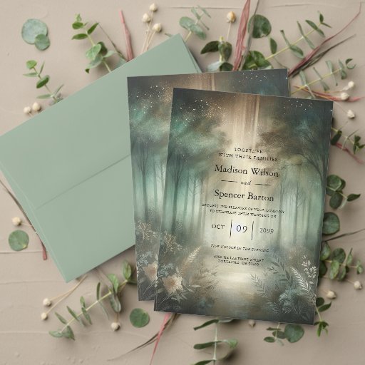 Sage Green Enchanted Forest Radiance Wedding サンキューカード