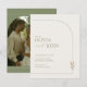 This invitation beautifully blends minimalist elegance with a warm bohemian vibe. The back features a prominent arch-shaped photo slot for you to showcase your favorite couple's picture, set against a calming sage green background with delicate white line-art arches.