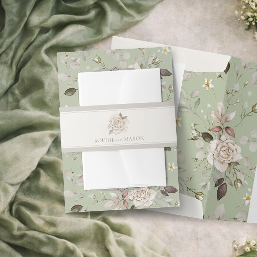 Sage Green Rose Wedding Table Numbers 10–19 招待状