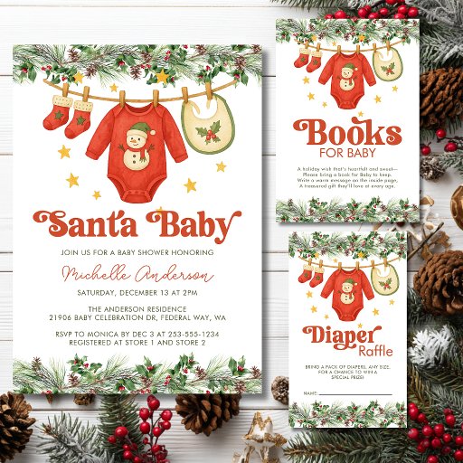 Santa Baby Christmas Clothesline Baby Shower サンキューカード