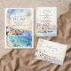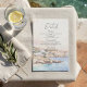 Featuring a romantic Mediterranean coastal watercolor scene with soft ocean blues and warm sunset tones, this seating chart adds a sophisticated and cohesive touch to your wedding reception.