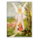 Altes Bild. Mädchen mit Blumen. Drohende Schlange ist Kreuzotter. Engel hilft.