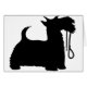 犬によってがそれとそれで握られる鎖であるスコッチテリアの黒いシルエットのプロフィールは口、上りおよび散歩すること熱望した尾です。