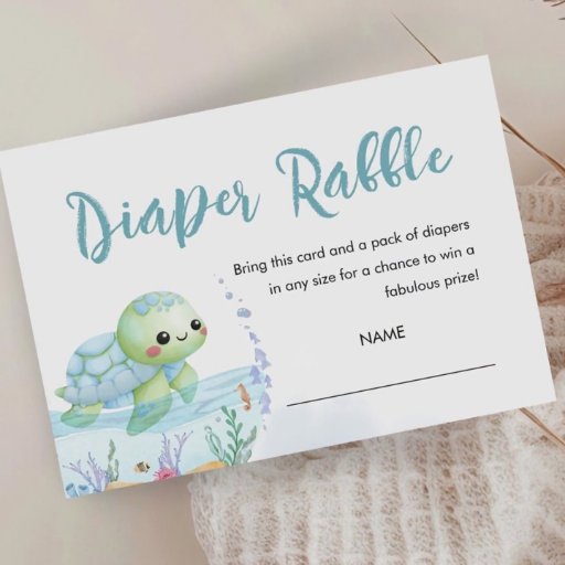Elevate your Baby Shower with our "Sea Turtle" Hatchling Baby Shower Diaper Raffle Cards", and give your guests the possibility to participate in the Diaper Raffle! Give them the chance to win amazing prizes while helping the parents-to-be prepare for their bundle of joy. Don't miss out – grab your Diaper Raffle Enclosure Card now and make your baby shower even more special!