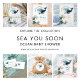 Sea You Soon Whale Ocean White Baby Shower 招待状