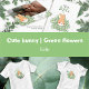 Mignon lapin entouré d'élégantes fleurs pour la fête d'anniversaire et le baby shower de votre enfant. Serviette en papier personnalisée avec le nom de votre enfant. Dessin d'un petit lapin entouré de fleurs. Produit faisant partie d'une collection.