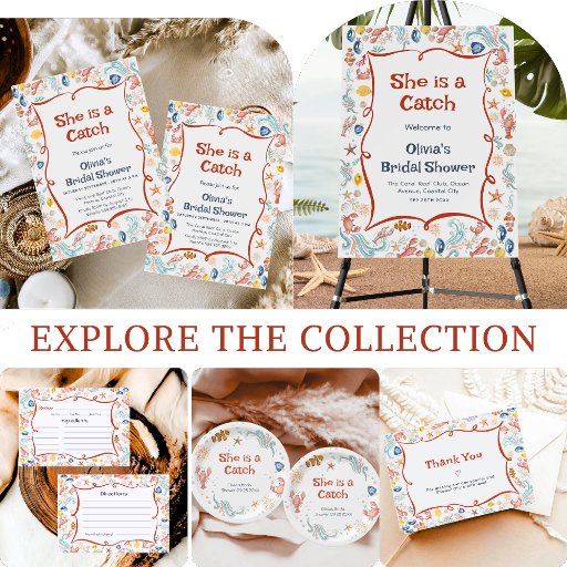 Make a splash right from the start with this gorgeous "She Is a Catch" welcome poster – the perfect greeting for your coastal or nautical bridal shower!