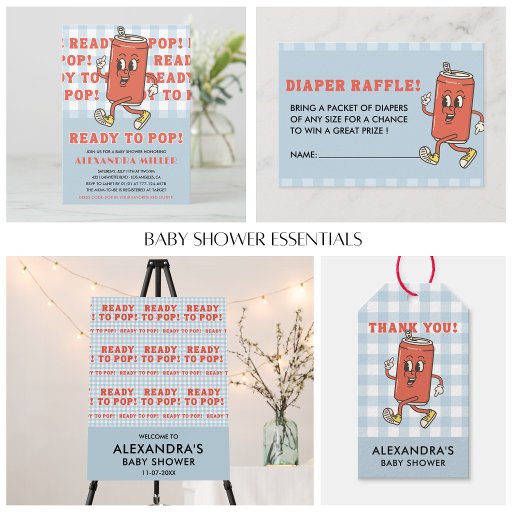 She is ready to pop Baby Shower Retro Blue Ginghamデザイン: Sophie Chevalier