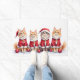 Siberian Cat Christmas Dress Santa Hat ドアマット