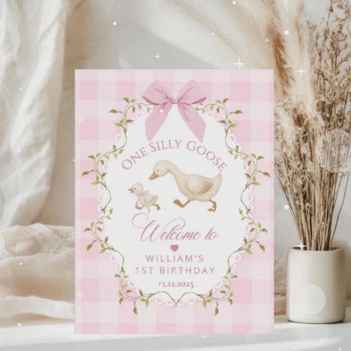 Silly Goose Adoption certificate Pink Gingham 招待状