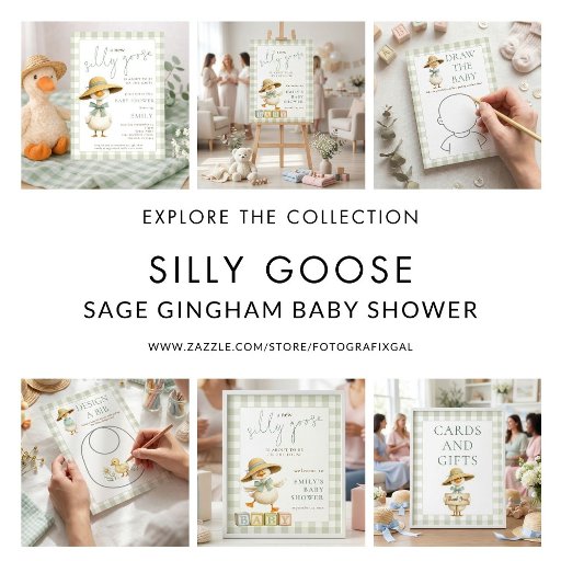 Silly Goose Sage Gingham Cards Gifts Baby Shower ポスター