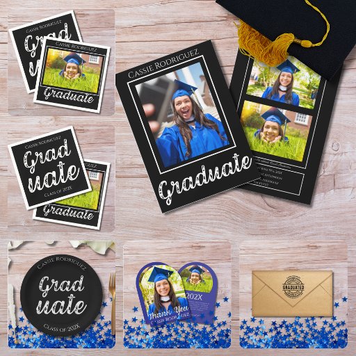 Celebrate the monumental achievement of graduation with the Simple Modern Calligraphy Photo Graduation Thank You—a perfect blend of elegance and personal flair. This design is a canvas where contemporary meets classic, featuring sleek calligraphy that adds a touch of sophistication. The unique format announcements you to customize by adding three photos, allowing you to share cherished memories that capture your journey and triumph. Printed on high-quality cardstock, each exudes a refined simplicity that enhances your event’s theme without overshadowing its importance. The clean lines and modern aesthetic complement any graduation ceremony, making this a timeless keepsake. Elevate your celebration and make your thank you unforgettable with this perfect fusion of minimalism and personalization.