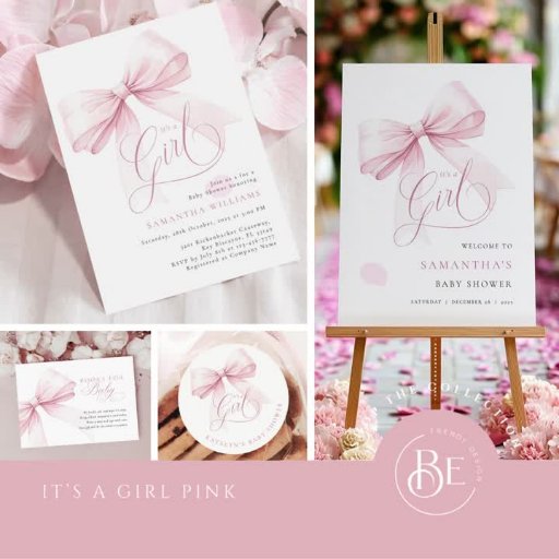 A Simple and Elegant Bow Baby Shower Invitation featuring a soft pink bow design and refined typography.