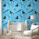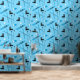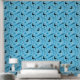 Skiing themed wallpaper with a pattern of skis, poles, goggles, and boots on a blue background. This skiing wallpaper would be great for a ski school, a winter sports travel agent, or for anyone who loves snow sports.