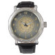 Sleek Modern Gold & Silver Dark Leather Custom 腕時計