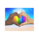 滑りやすいジョーの2つの心の手の異人種間の男性の手ハートカラフル虹の砂のビーチの靴きらめくダイバーシティ愛ゲイプライドギフト芸術的LGBTQIAの美しい陽性静かな魔法の明るい太陽