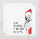 A humorous and unique holiday design featuring Santa peeking from behind a wall, saying "Just checking if the kids are good". Perfect for parents and anyone who enjoys playful, witty Christmas artwork. This creative illustration adds a touch of laughter and festive charm to any holiday setting, making it a delightful and one-of-a-kind seasonal design.
