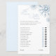 Charming winter bridal shower game where guests guess whether the bride or groom fits each statement. Features soft snowflakes and a refined winter palette, perfect for elegant bridal gatherings.