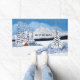 A doormat with a beautiful winter scene including snowy mountains, rustic cabin and snow covered evergreens. The image and text can be personalized. Original artwork by W.B.