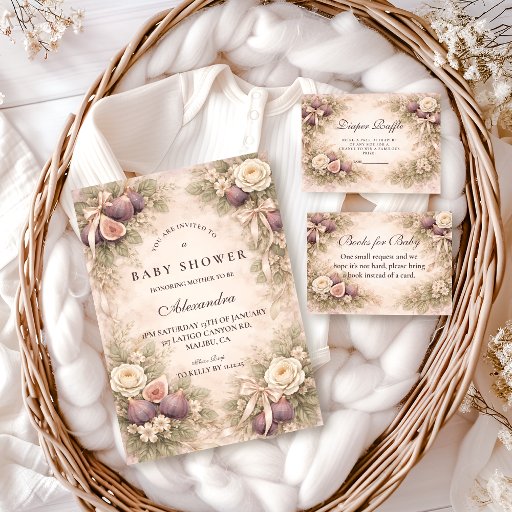 fig baby showerfig gardenbotanical figsvintage floraleuropean gardenneutral baby decorstorybook floralromantic greenerysoft beige floralselegant baby theme