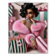 This elegant illustration features a stylish fashion diva surrounded by beautifully wrapped gifts, pearls, and designer shopping bags. Draped in a plush pink fur coat with sparkling jewelry and flawless vintage curls, she embodies the energy of luxury shopping, feminine confidence, and the soft life aesthetic.